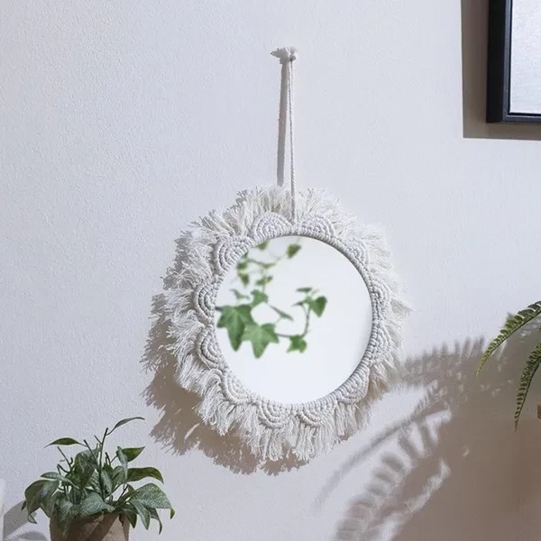 Macrames Wall Mirror Handmade Woven Wall Decor Makeup Mirrors Wall Tapestry Home Porch Mirrors for Home Bathroom Decor FOR