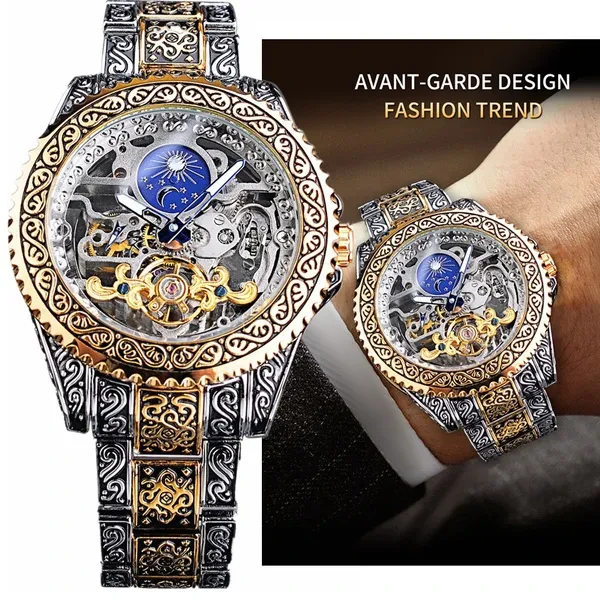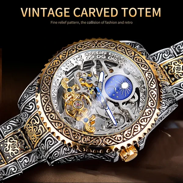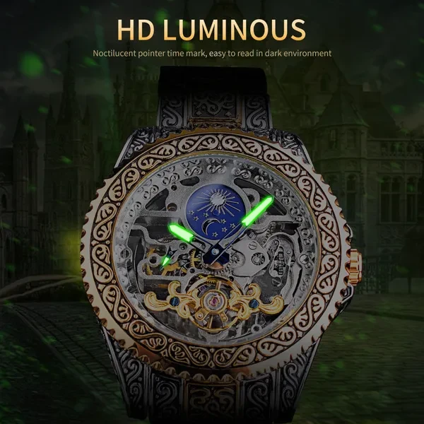 Mechanical Watch Men Tourbillon Automatic Wristwatch Luxury Hollow Watches Waterproof Mens Fashion Watches With Moon Pash