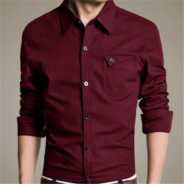 Men Dress Shirts Slim Fit Male Casual Shirt Long Sleeve