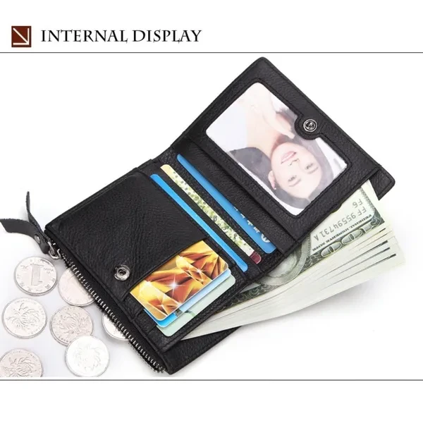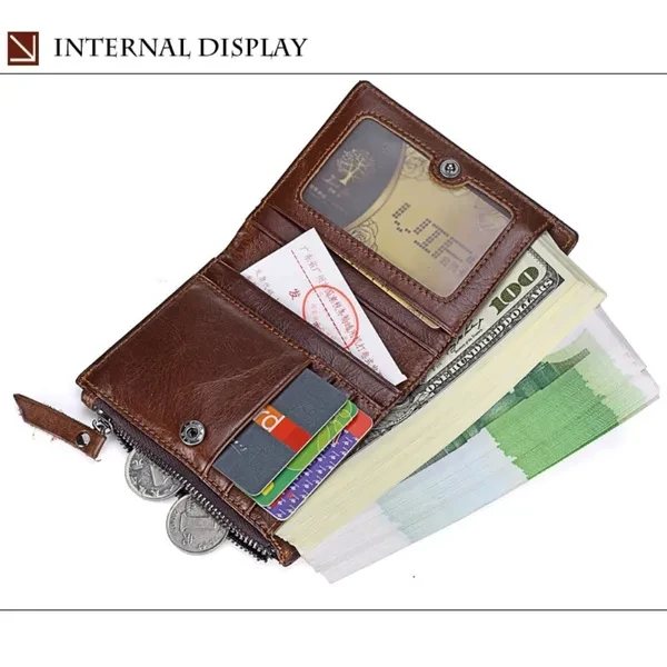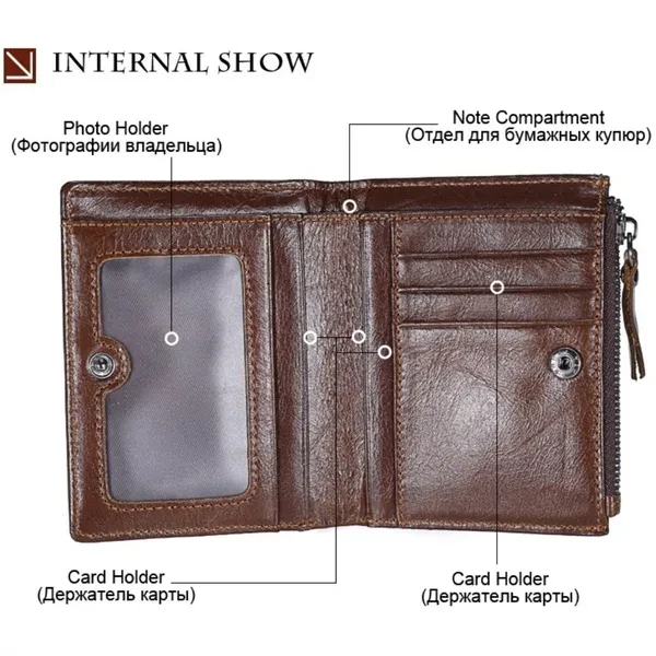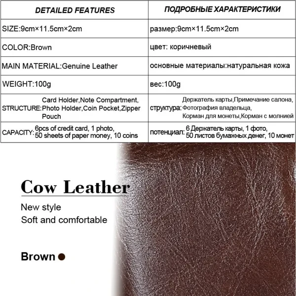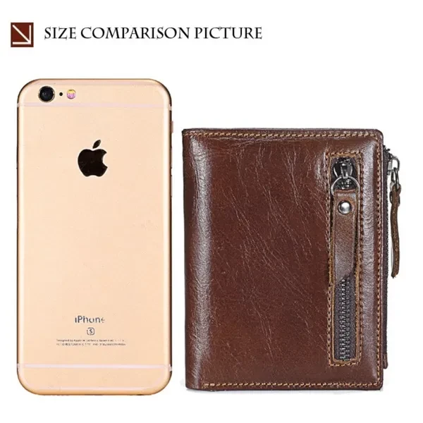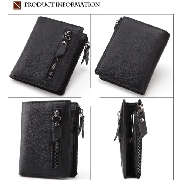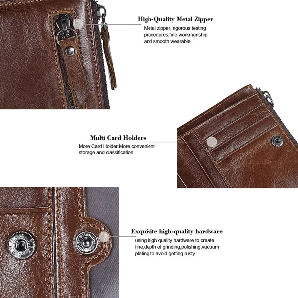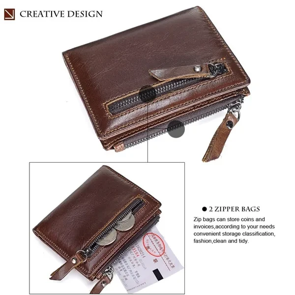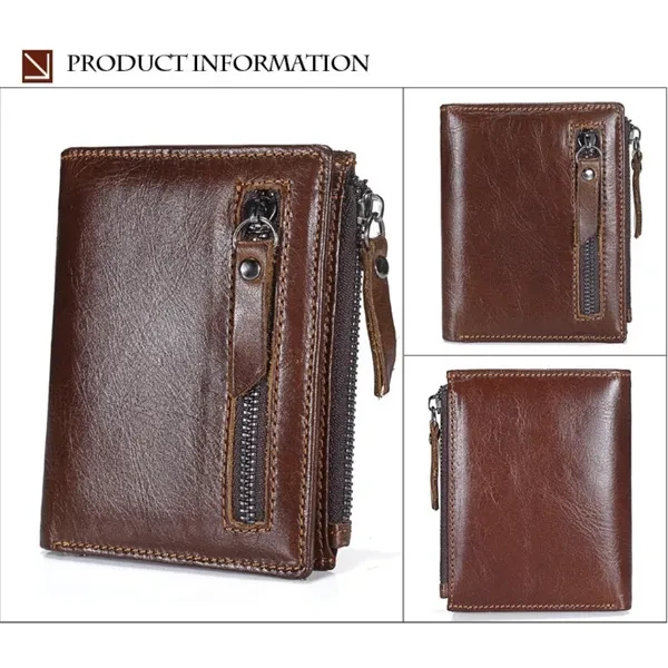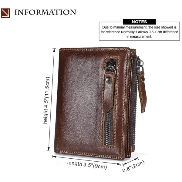 Features: ✿100% LEATHER WALLET -- Oil wax leather is old fashion and vintage. A brand new oil wax wallet could look old and torn, which makes it a perfect leather style for those who miss the good old days. ✿DOUBLE ZIPPER CREATIVE DESIGH -- Double zipper independent pocket,according to your needs convenience storage classification,fashion,clean and tidy. ✿FUCTIONAL CAPACITY -- 6 card holder,1 photo holder,2 coin pocket,1 outside pocket for keys changes or other little things.And you can use it in any occasion such as casual,school day,business and so on. ✿HIGH QUALITY COIN PORKET -- Metal zipper,rigorous testing procedures,fine workmanship and smooth wearable.Coin is portable,easy carry and storage. ✿EXQUISITE HIGH QUALITY IRONWARE -- using high quality ironware to create fine,depth of grinding,polishing,vacuum plating to avoid getting rusty. ✿CRAZY HORSE LEATHER WALLET : - This Wallet is made from Crazy Horse Leather with Inner material of polyester. It has a soft, textured surface and possesses the same flexibility as leather which is old fashion and vintage. ✿A GREAT PRESENT: This Wallet is an essential for anyone on the go, especially for the men you caring about, for your boys, lover, honey, dear, sweetheart, Dad, boyfriend, father, grandpa friends as a Birthday, Valentine's Day, Anniversaries, Father’s Day, Thanksgiving, Christmas, Graduation Gift Size:11.5 * 9* 2 cm ( Note 1. 1 Inch = 2.54CM; 1CM = 0.39 Inch ) Tips: ( Due to the different measurement methods, the bag size may have 1.0-2.5cm tolerance ) Package Including: 1 x Men Wallett.