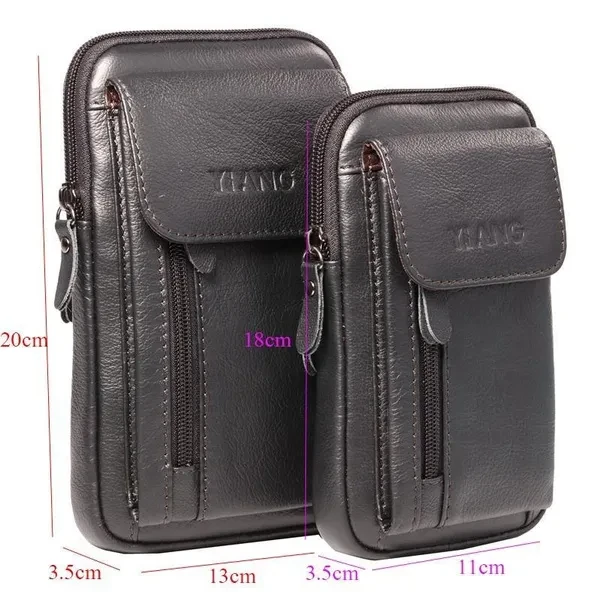 •Style:Waist Pack/Messenger/Shoulder Bag; Color :Coffee,Black; Materials:Real Leather; Total size S: (W x D x H): 11 x 3.5 x 18 cm (4.3 x 1.37 x 7.08 in); Total size L: (W x D x H): 13 x 3.5 x 20 cm (5.11 x 1.37 x 7.87 in); Shoulder Strap(Adjustable):125 cm(49.21 in); •Please Note: Due to manual measurement, there maybe 2-3 cm difference; •Please Note: The lighting and displays can cause color difference, We appreciate your understand!