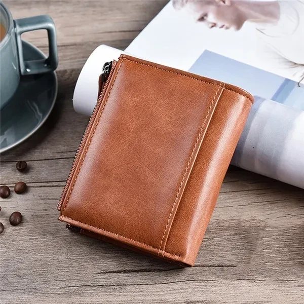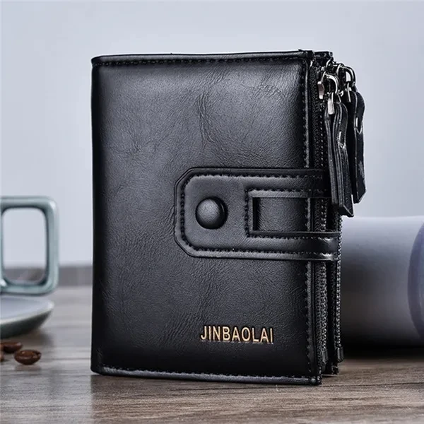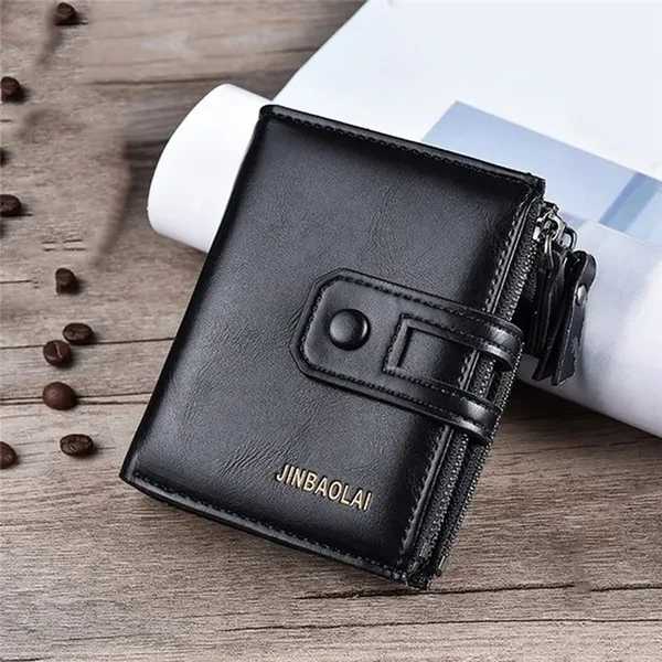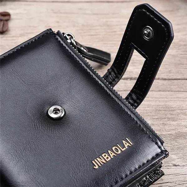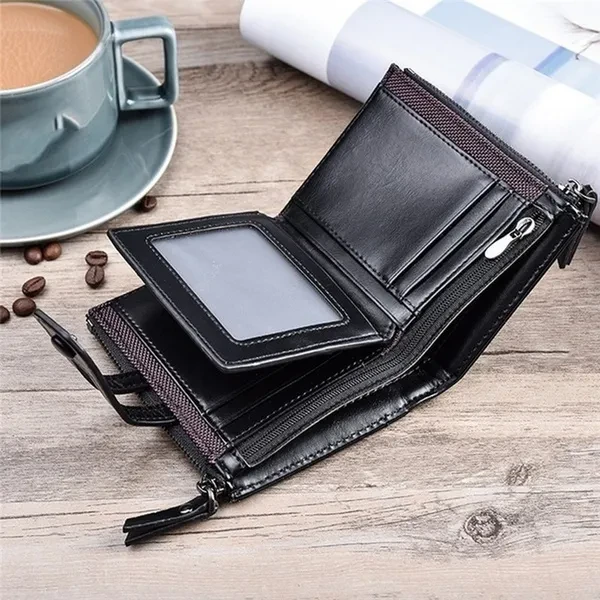 Men Short Leather Wallet Zipper Multi-purse Wallets Large-capacity Multi-card Holder Money Clip