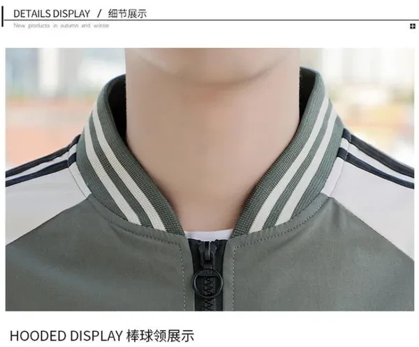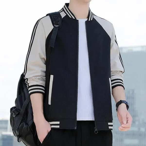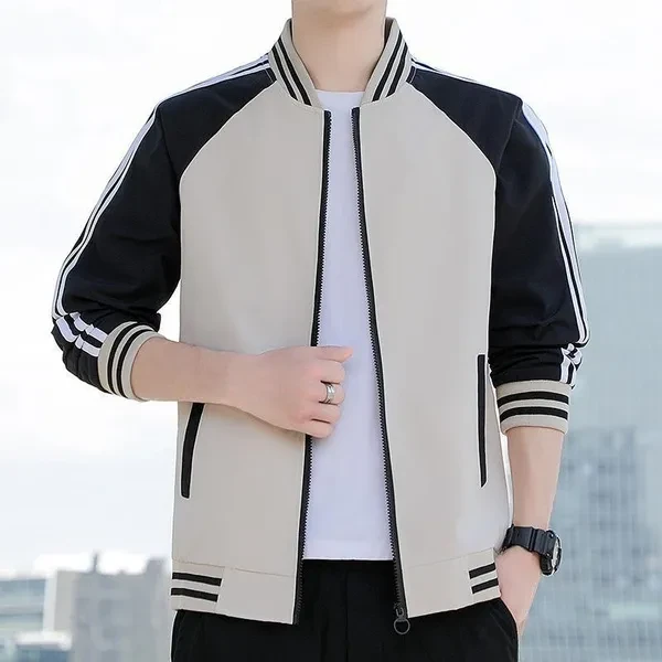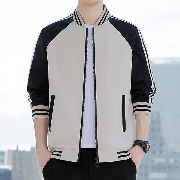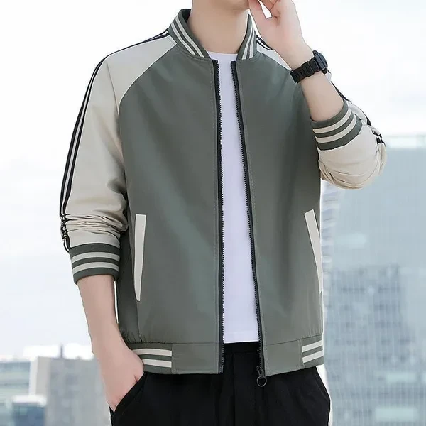 Mens Baseball Jackets Spring Autumn Fashion Men's Casual Zipper Baseball Jackets Striped Patchwork Jackets Men's Coats 3 Colors