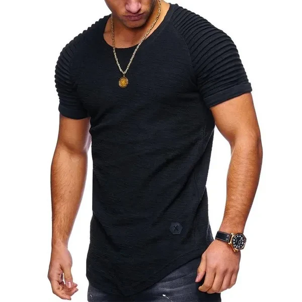 Men's Casual Tops Summer Short-sleeved T-shirt Solid Color Fold Round Neck Clothes Men's T-shirt