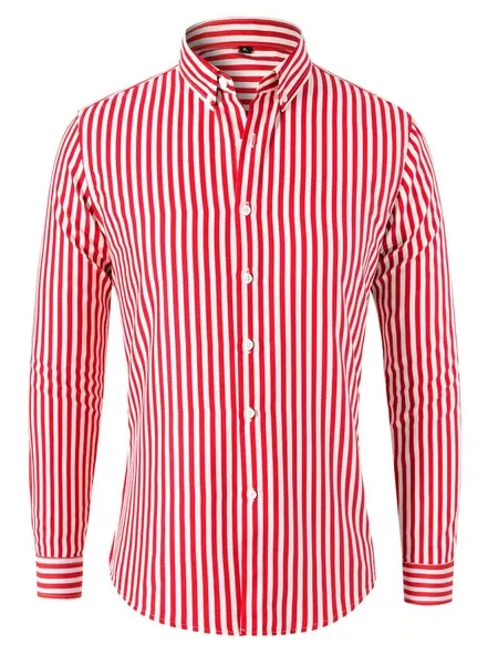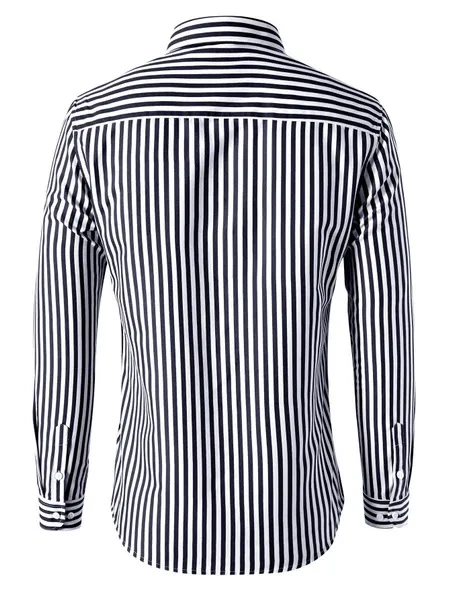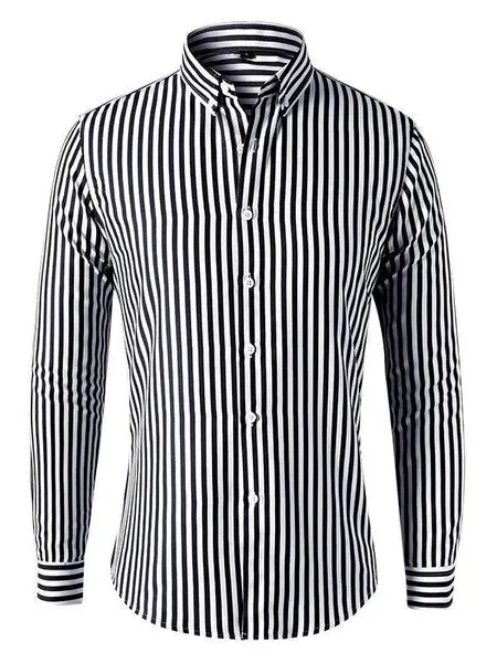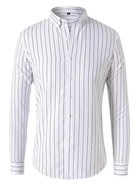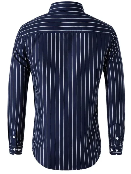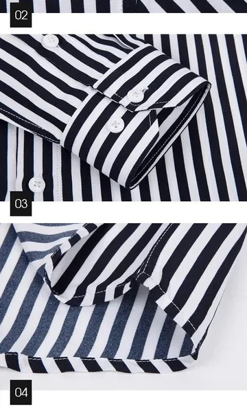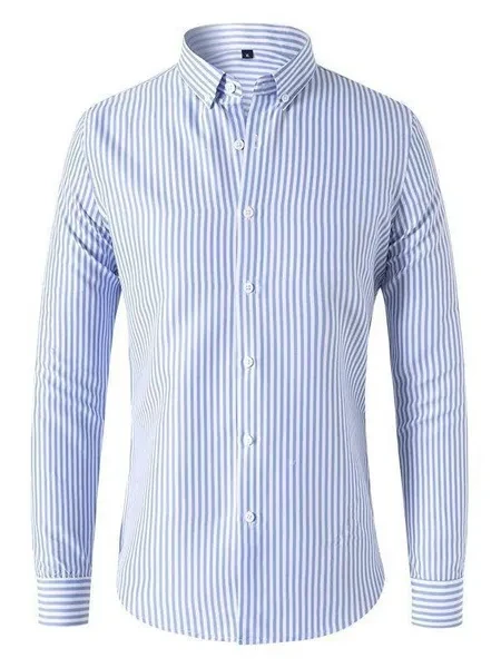 Mens Dress Shirts Long Sleeves Formal Business Buttons Strips Casual Shirts Tops