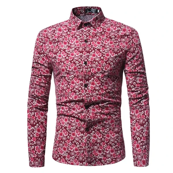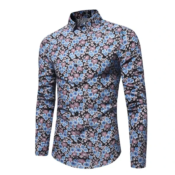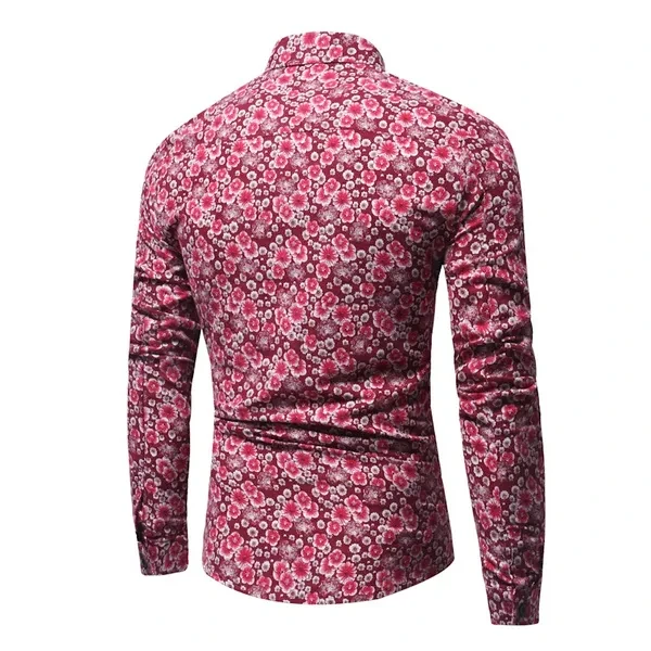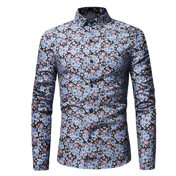 Men's Fashion ARRIVALS MODERN GENTLEMAN Floral Print Slim Fit Long Sleeved Polo Shirt Plus Size