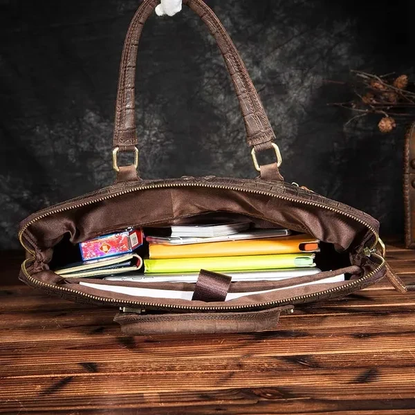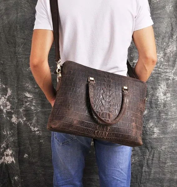 Mens genuine leather briefcase Attache Portfolio Sling Messenger Shoulder Tote 15.6" Laptop Bag