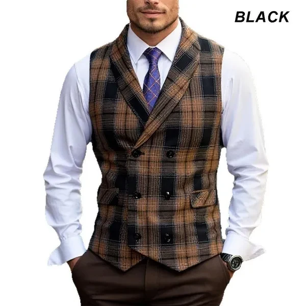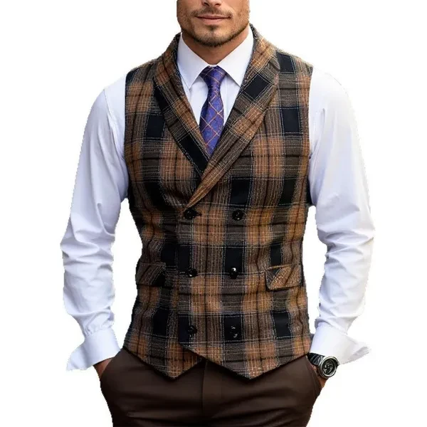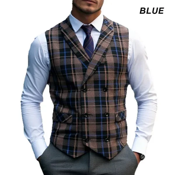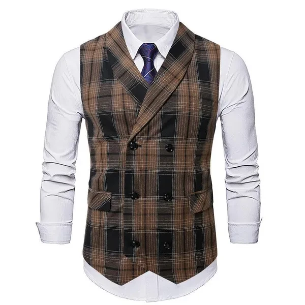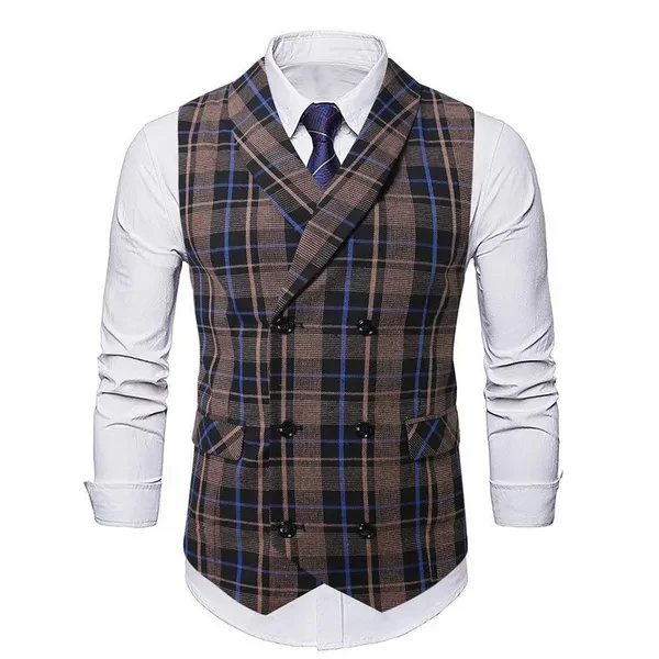 Men's New Arrival Waistcoat British Suit Vest Plaid Double-breasted Mens Vestcoat Sleeveless Jacket Slim Vest