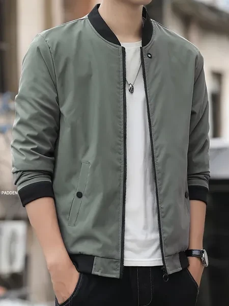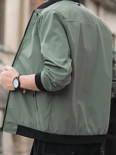 Men's Solid Band Collar Zip-up Jacket For Spring Fall