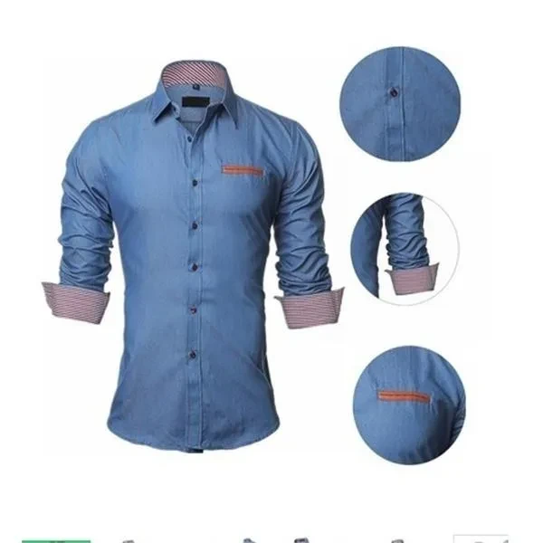 The description: Product Features For the seasons: spring, autumn, summer Occasion: casual, business Brand New & amp; High Quality Color: Dark blue, Light blue SIZE:M-3XL