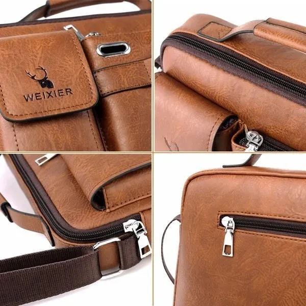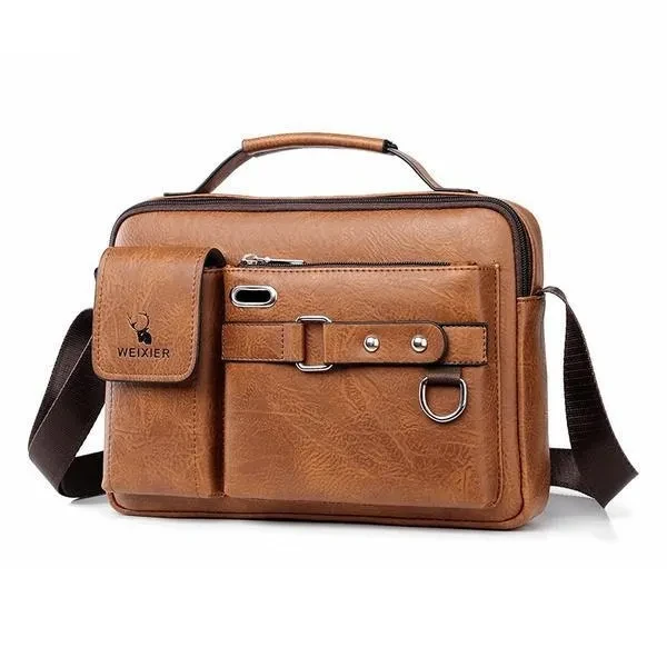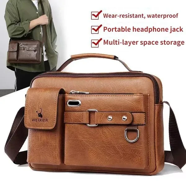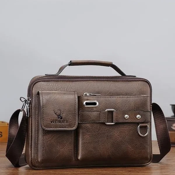 Feature Material: High quality soft PU leather and polyester lining shoulder bag for men. Excellent craftsmanship, durable, luxury, to display your outstanding temperament. Large Capacity and Multi Purpose: 28x19x8 cm, can easy hold within 8 inch ipad, iphone, cell phone, wallet, credit cards, checkbook etc. Business and Causal Style: The men's crossbody bag suit on train, bicycle, sporting events for work, travel, shopping and more. Just take it, always delighting you. Details: This men messenger bag is designed , good for waterproof and scratch resistance, making the texture natural rough,feeling delicate. And you can have 3 carrying options (single shoulder,cross body and hand carry). Unique Gift: The vintage casual business mens messenger bag is a perfect gift for your friends, family and colleagues. Also for celebration, birthdays, christmas, anniversaries, father's day, valentines day, and other special occasion. Product Details Color: Brown, Black, Coffee Weight: 0.38 KG Dimensions: 28x19x8 CM Material: High quality soft PU leather (soft and smooth). Zipper: Solid texture, bright color, wear-resisting, anti-oxidation, scratch-proof and scratch-proof, not easy to rust. Apply: Business, Work, Daily, Travel, Shopping, School Versatile: It can be used as mens shoulder bag, messenger bag, handbag and cross body bag etc. Capacity: Money, Checkbook, Credit Card, IPad Mini, Cell Phone, Coin Purse, Wallet, Earphones and so on. Package Included:1 x Shoulder Bag High Quality Workmanship and Finish The messenger bag is made by professional artisans with finest craftsmanship. Delicate design and neatly stitched to ensure its longevity, superb uniform sutures, even in the corner of the junction is still smooth and beautiful, fine workmanship and well made. Hope you have a happy online shopping, please kindly check the product size and product details.
