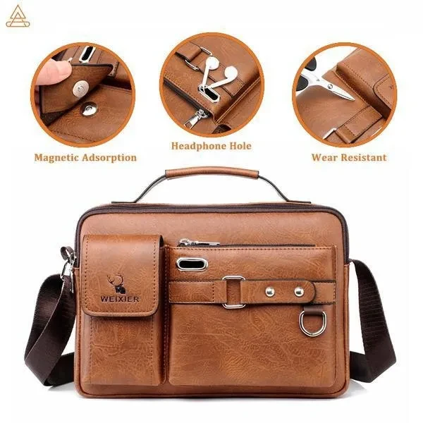 Messenger Bags for Men, Leather Crossbody Bag Waterproof Shoulder Bags Multifunction Briefcase Travel Work Business Handbags With Adjustable Strap