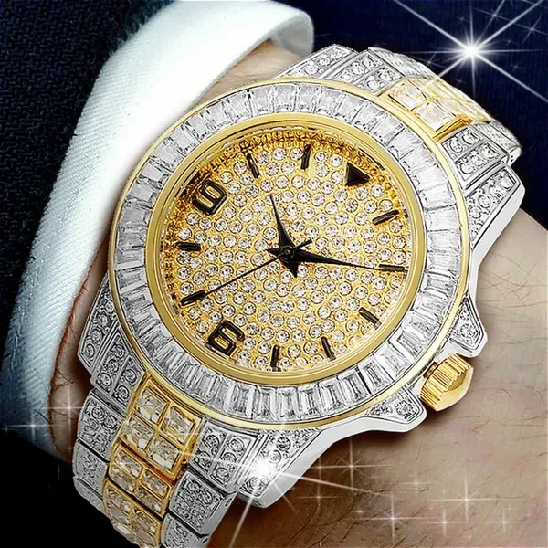 Missfox Men Watches Waterproof Wrist Watch Unisex Full Diamond Quartz Men Watch