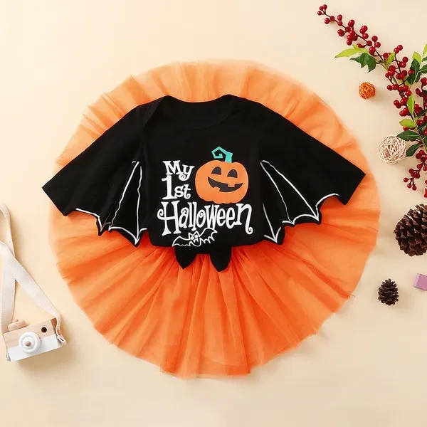 My 1st Halloween Pumpkin Baby Girls Long Sleeves Romper and Skirt 2PCS Outfits Costume Clothes for 0-24 Months