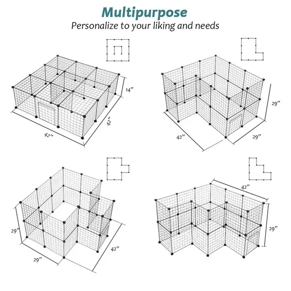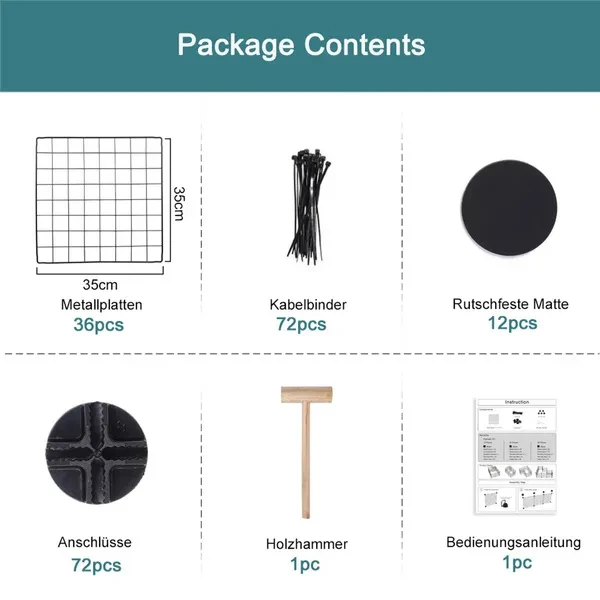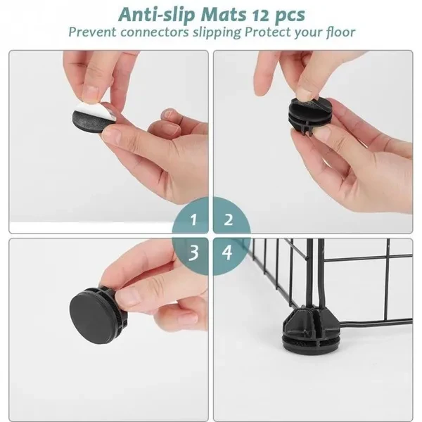 Features: 1. Easy to assemble: easy to assemble with instructions and includes mallet.Use cable connections for more functions, such as doors or ramps 2. For various animals: hedgehogs, hamsters, guinea pigs or rabbits, they can have fun in this fence.It's easy to look at them from any Angle 3. DIY expandable: make different shapes of qualified translucent white material panels to present different combinations into the actual room layout 4. Green and durable products 5. Strong, not easy to fall apart 12pcs Package Includes: 12 x Metal Panels 28 x Black ABS plastic connector, 1 x Wooden hammer 1 x Instructions 24pcs Package Includes: 24pcs metal plates 48pcs zip ties 12pcs non-slip mat 48pcs connectors 1pc mallet 1pc user manual 36pcs Package Includes: 36pcs metal plates 72pcs zip ties 12pcs non-slip mat 72pcs connectors 1pc mallet 1pc user manual Specifications: 1. Material:Metal panels 2. Color: Black 3. Product Size: (28 x 56 x 14)" / (71 x 142 x 35.5)cm (L x W x H) 4. Weight: 6lb / 2.7kg Note: 1.When receiving the goods, please confirm the product according to the listing of instructions. Once you find Less pieces, please provide relevant pictures to contact us. We will deal it in the time. 2.Please install goods with the instruction manual. 3.It is recommended that the installation should not be too tight to adjust easily. After the structure is installed, firm the interface for more stability.