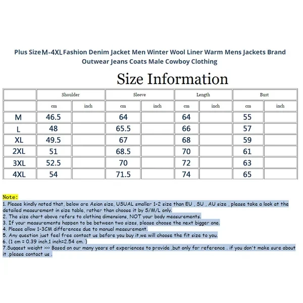 *Leisure collocation *Button closure *Sherpa lining provides excellent warmth and comfort in cooler days *Basic turn down collar, front button down closure, long sleeves with button cuffs *Two chest pockets and two side pockets to provide max storage and easy accessibility to basic necessities *Hand wash and machine wash Sherpa line fleece, turn down collar, single breasted, cuffs with buttons Perfect for casual wear, date meeting, party, fishing, traveling, sports and so on. You can pair with jeans to create a leisure look,or match with sweaters to keep warm in cold days. Item Type:Jacket Gender:Men Color:Khaki,brown,black Material: Shell: Artificial fur, Lining: Lamb hair Sleeve Length: Long Sleeve Season:Autumn/Winter Style:Casual Size:M-4XL M: Bust-55cm Shoulder-46.5cm Sleeve-64cm Length-64cm L: Bust-57cm Shoulder-48cm Sleeve-65.5cm Length-66cm XL: Bust-59cm Shoulder-49.5cm Sleeve-67cm Length-68cm XXL: Bust-61cm Shoulder-51cm Sleeve-68.5cm Length-70cm XXXL: Bust-63cm Shoulder-52.5cm Sleeve-70cm Length-72cm XXXXL: Bust-65cm Shoulder-54cm Sleeve-71.5cm Length-74cm Quality Guarantee. Fast delivery and logistics. Thank you for your trust and support,hope you have nice day!