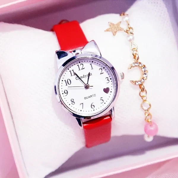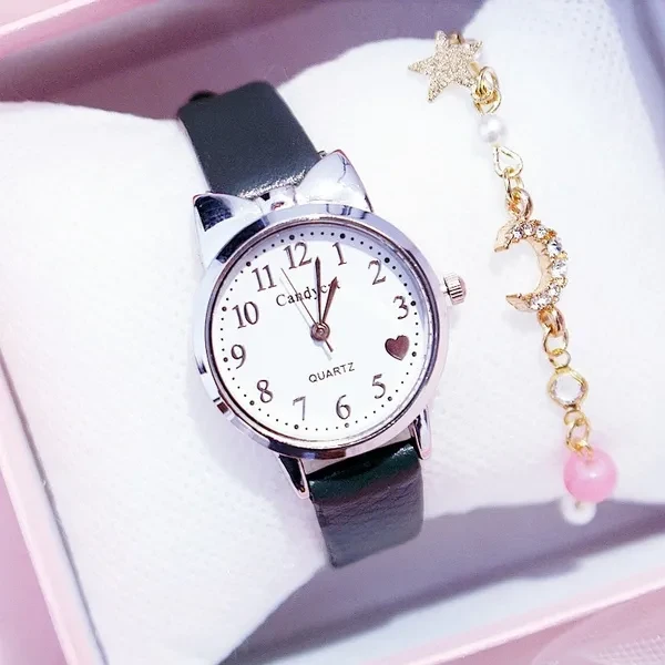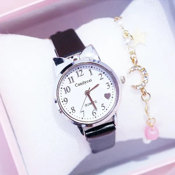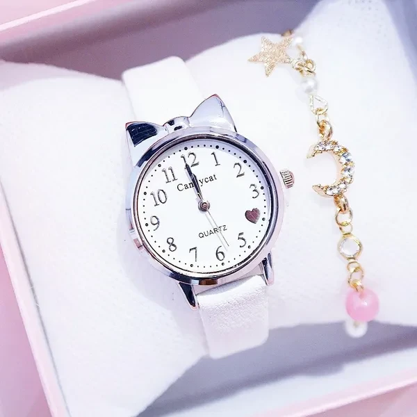 New Casual Women Watches Cute Cat Ear Lady Bracelet Watch Fashion Leather Band Quartz Wristwatch Clock Montre Femme Relogio