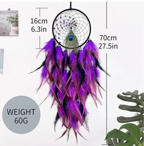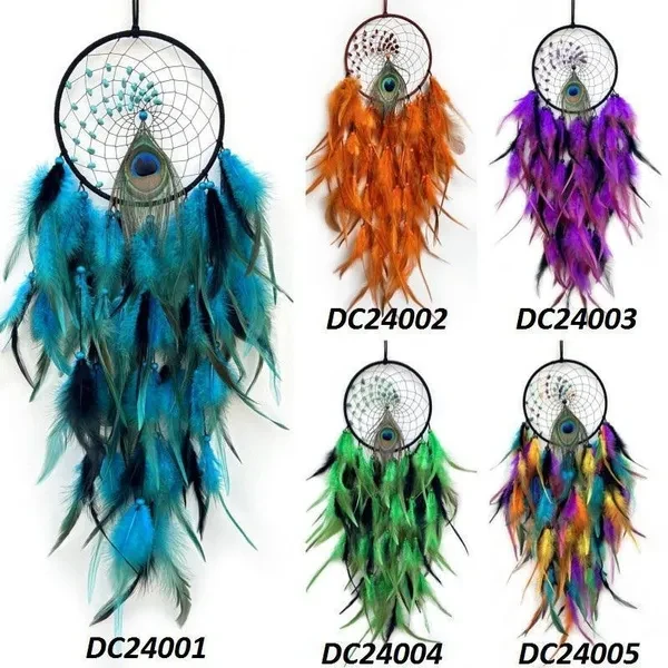 New Colorful Peacock Feather Dream Catcher Home Garden Decorative Crescent Dream Catcher Handicraft Home Living Room Bedroom Wall Hanging Decoration Tree of Life Dreamcatcher Wind Chimes