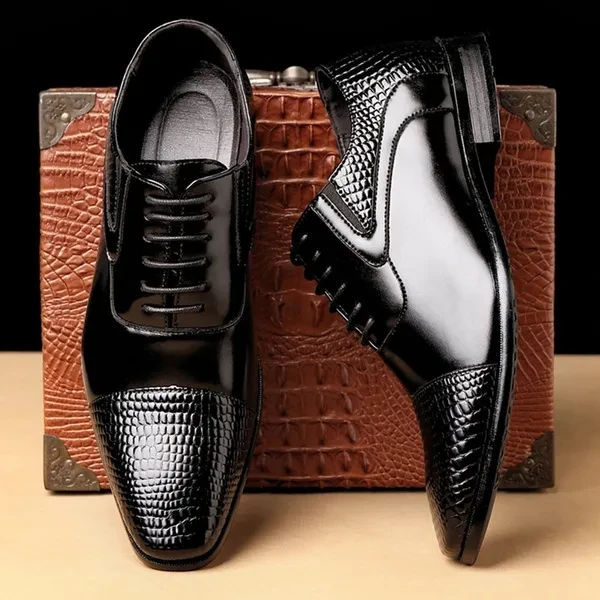 New Leather Shoes Embossed Men's Shoes 2020 Men's Shoes Square Head Tie with Low-end Shoes