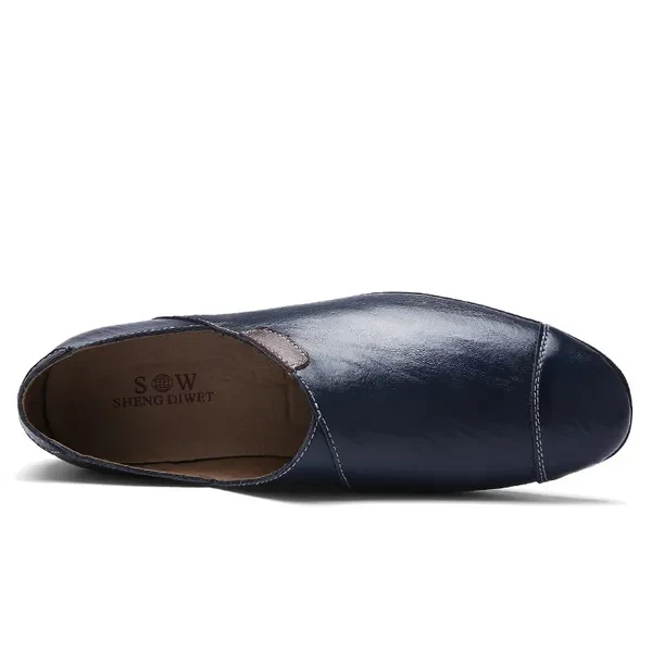 Shoe material: cowhide Sole material: Rubber Style: Leisure Function: antiskid, breathable Color: black, brown, blue Size: 37,38,39,40,41,42,43,44,45,46,47,