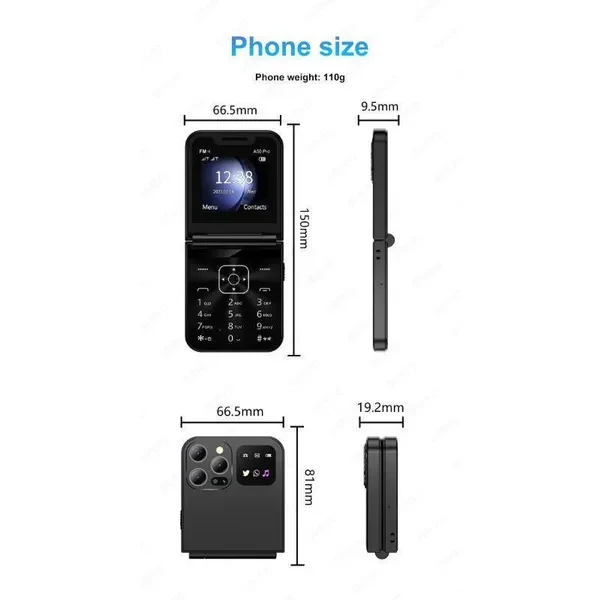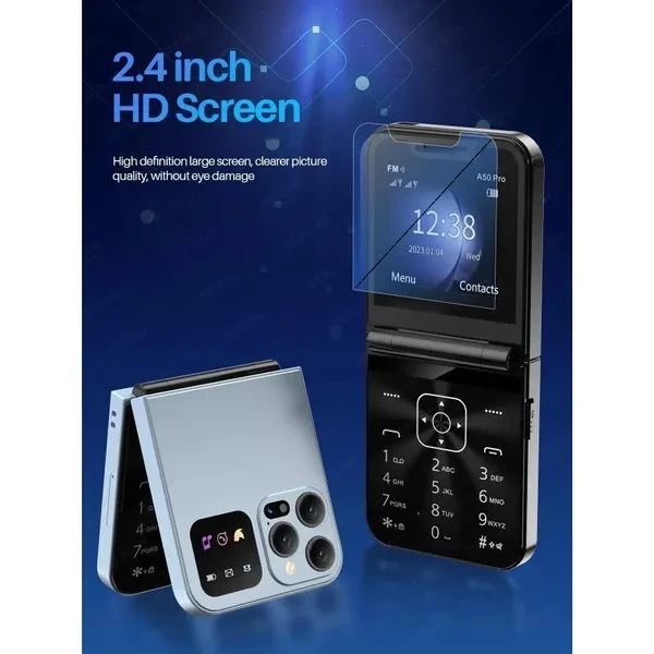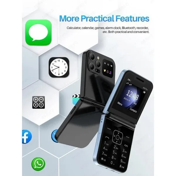 New product! i15 PRO Foldable Mobile Phone Auto FM Radio Call Record Speed Dial Magic Voice Dual SIM GSM Unlocked Cellphone 2.4" Type-C