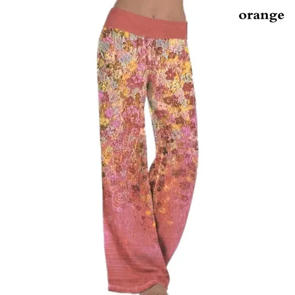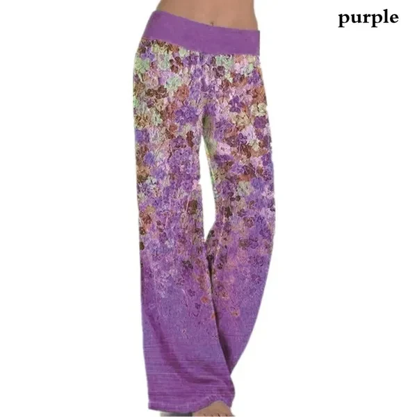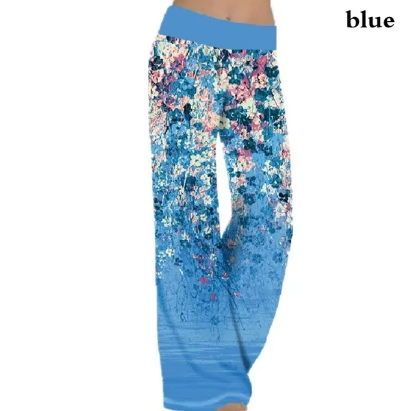 New Women Printed Yoga Wide Leg Pants Summer Casual Bohemian Loose Pants