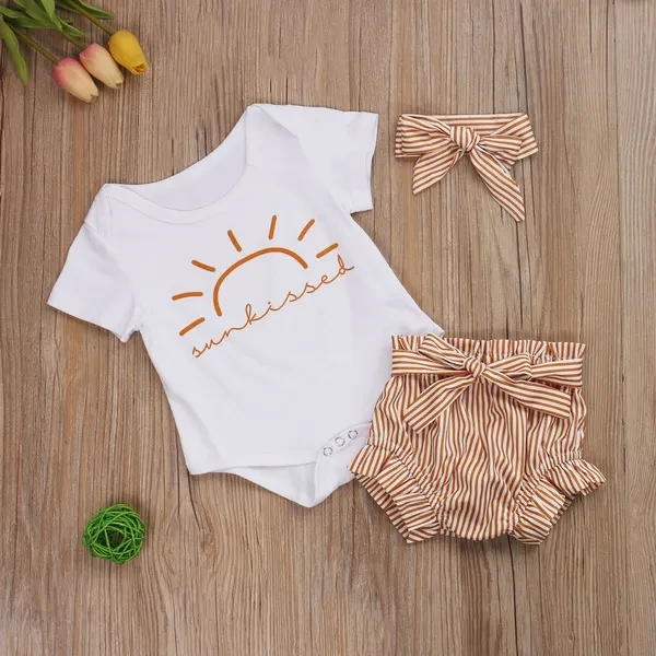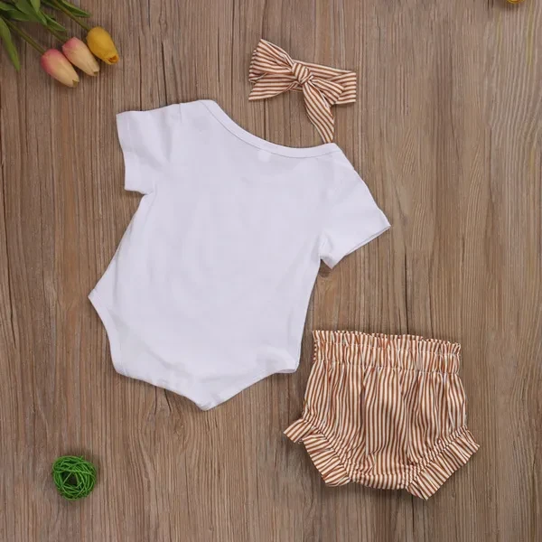Newborn Baby Girl Short Sleeve Romper Tops Shorts Pants Headband Outfit 3Pcs Clothes Set 0-24M