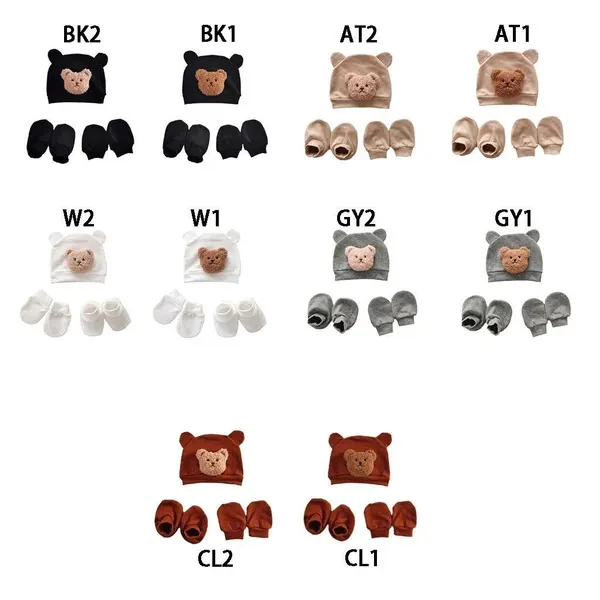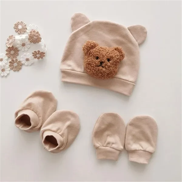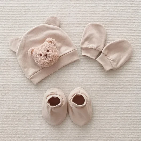 <p>Features: Keep your newborn warm with this set of hat, gloves, and socks, perfect for photography or as a gift for new parents. Made from soft and comfortable fabric, this set ensures that your baby stays comfortable all day long, the hat, gloves, and socks are gentle on delicate skin and provide warmth. Designed specifically for babies aged 0 to 6 months, this set is perfect for keeping them stylish, it makes a great addition to their wardrobe. Whether you're at home or outdoors, this set is versatile enough to be worn in any situation, use it indoors to keep your baby warm, or take it outdoors for added With its bear pattern, this hat, gloves, and socks set will make your baby even more it is not only functional but also adds a touch of fun to any outfit! Specifications: Material: Polyester Cotton Color: 10 kinds of colors optional, refer to pictures to select please Size: Suitable for babies aged 0-6 months with a head circumference of 38-46cm/14.9-18.1inch Package Includes: 1 Piece Cartoon Bear Baby Hat 1 Pair Newborn Anti-grab Gloves 1 Pair Foot Cover note: Please allow 1-2cm errors due to manual measurement. Please allow for slight color differences due to different display resolution. </p>