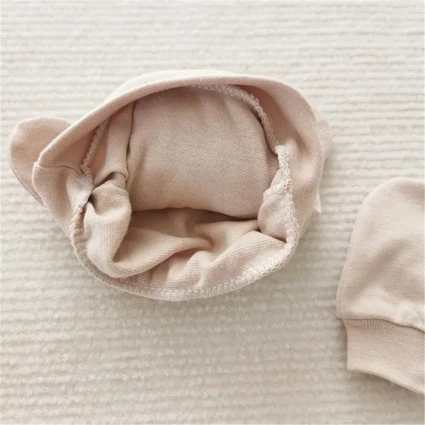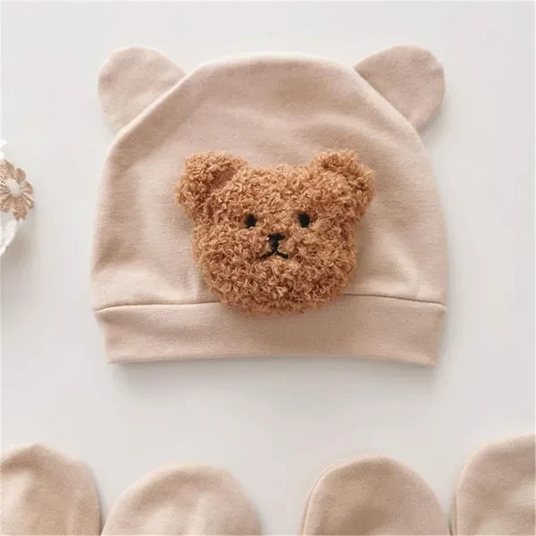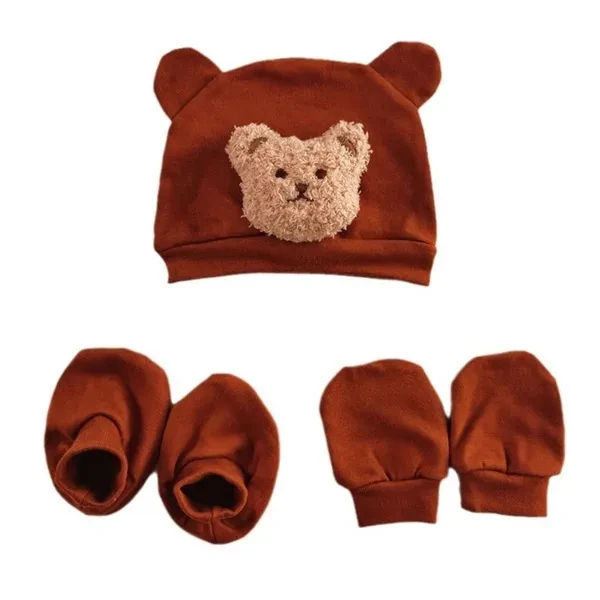 Newborn Baby Hat Plush Bear Bonnet & Anti Scratch Gloves and Socks Solid Color Photography Props and Accessories Gift VCZ
