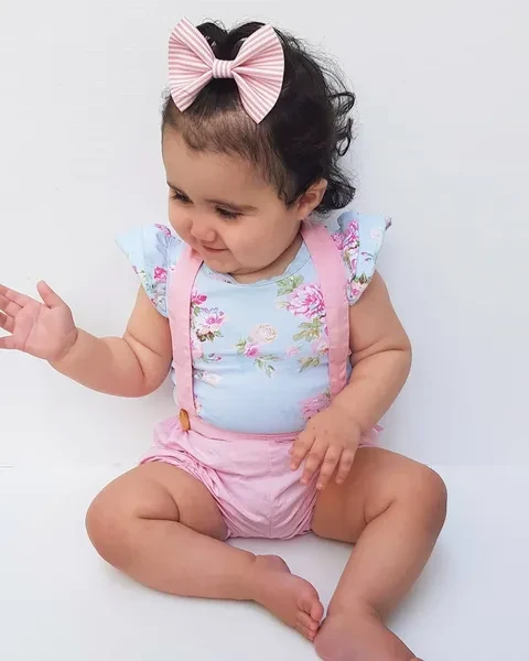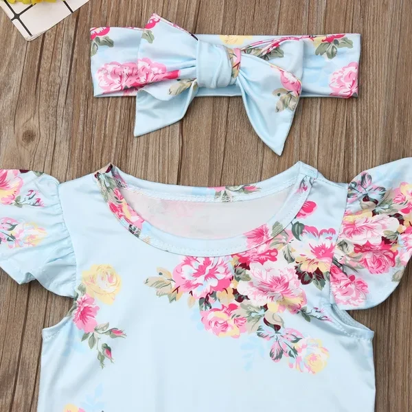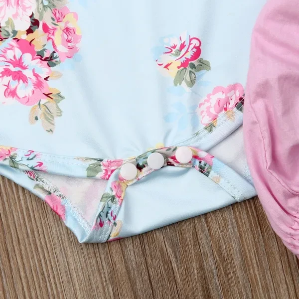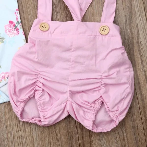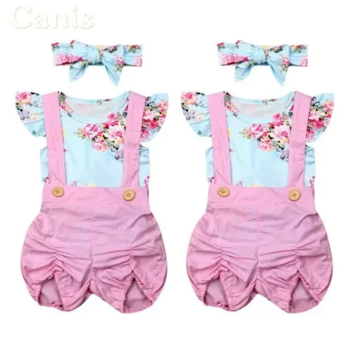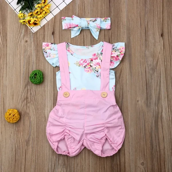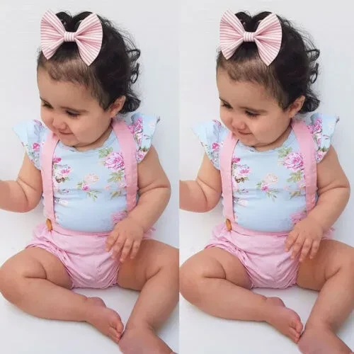 Newborn Baby Kids Girls Floral Romper Tops Bib Pants Headband Outfits Set Clothes