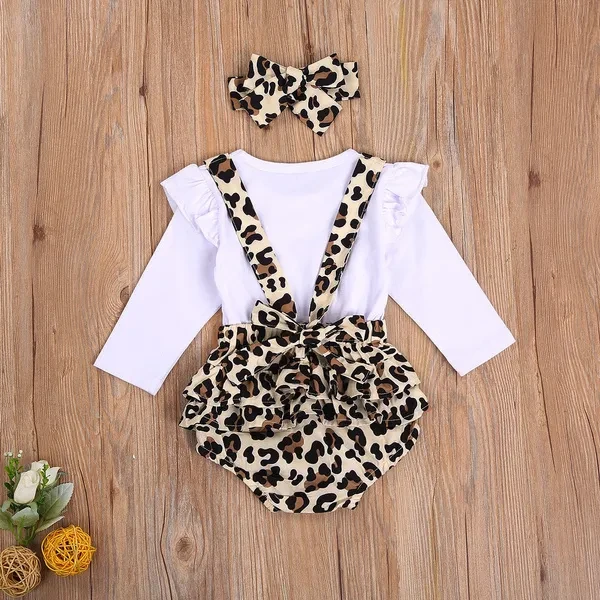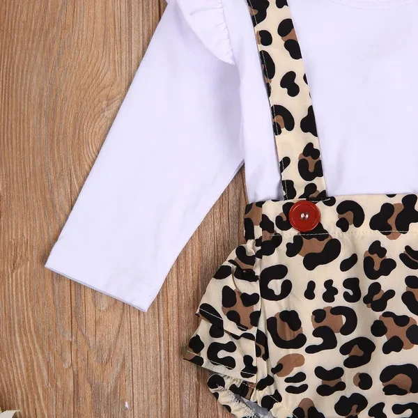 Infant Baby Girl Fall Outfits, Cute Suspender Button Leopard Ruffle Romper + Headband 2Pcs Clothes Set Features: -- Soft and comfortable fabrics give your baby the gentlest care. -- Recommended hand wash separately, hang dry and do not bleach. -- Please refer to the size chart below for selection. Size Chart :(Cm) Size Length Bust Sleeve Age 70 38 50 24 0-6 Months 80 40 52 26 6-12 Months 90 42 54 28 12-18 Months 100 44 56 29 18-24 Months Size Chart : (Inch) Size Length Bust Sleeve Age 70 14.96 19.69 9.45 0-6 Months 80 15.75 20.47 10.24 6-12 Months 90 16.54 21.26 11.02 12-18 Months 100 17.32 22.05 11.42 18-24 Months Specification: Material: Cotton, polyester Color: Leopard Gender: For Baby Girls Style: Sweet, Stylish Season: Summer, Spring, Fall Package Included 1 X Romper 1 X Headband