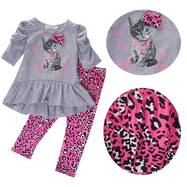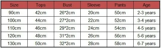 Hello! Welcome to our store! Pattern:Animal Print Color:Multi-Color Occasion:Everyday Material:Polyster+Cotton Season:Spring,Autumn,Winter Sleeve Length:3\/4 Sleeve Size Chat: Size Tops Bust Sleeve Pants Age 90cm 42cm 26*2cm 20cm 50cm 2-3 years 100cm 44cm 27*2cm 22cm 52cm 3-4 years 110cm 46cm 29*2cm 24cm 54cm 4-5 years 120cm 48cm 31*2cm 26cm 56cm 5-6 years 130cm 50cm 32*2cm 28cm 58cm 6-7 years What You Get: 1 x Tops & 1 x Pants