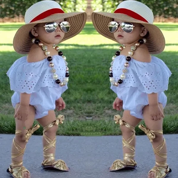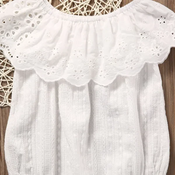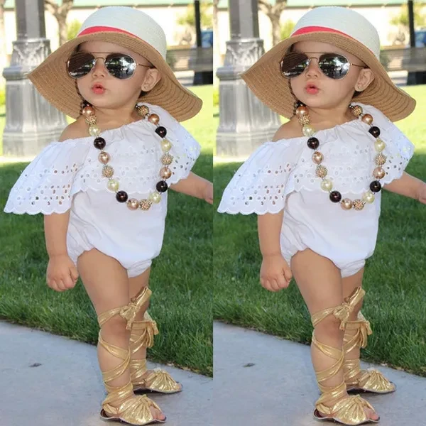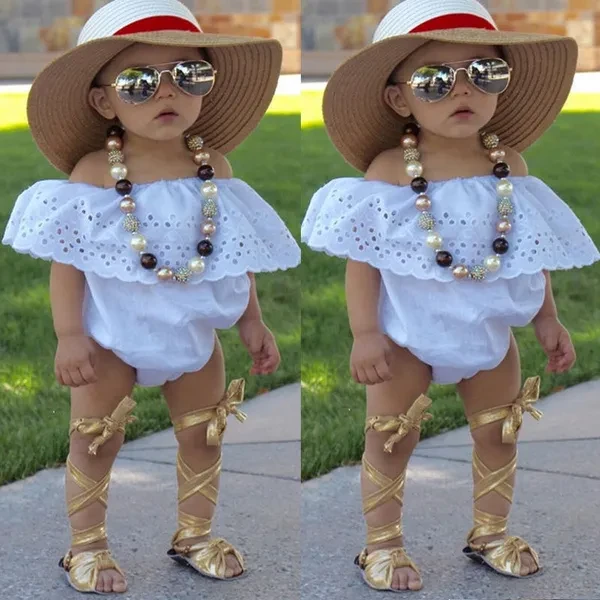 Hello! Welcome to our store! - Quality is the first with best service. customers all are our friends. - Material: Cotton Blend+Lace - Color: As shown in the pictures - Sytle: Off Shoulder + Sleeveless Please Note: √ Actual fabric colors may vary slightly from online colors due to variations in screen color setting. √ Once you know your body measurements,consult the size chart on the product pages for actual item measurements to determine which size you should purchase. - Listing includes: 1 x Baby Romper (Does not include other accessories)