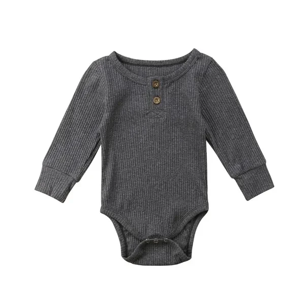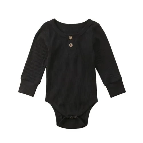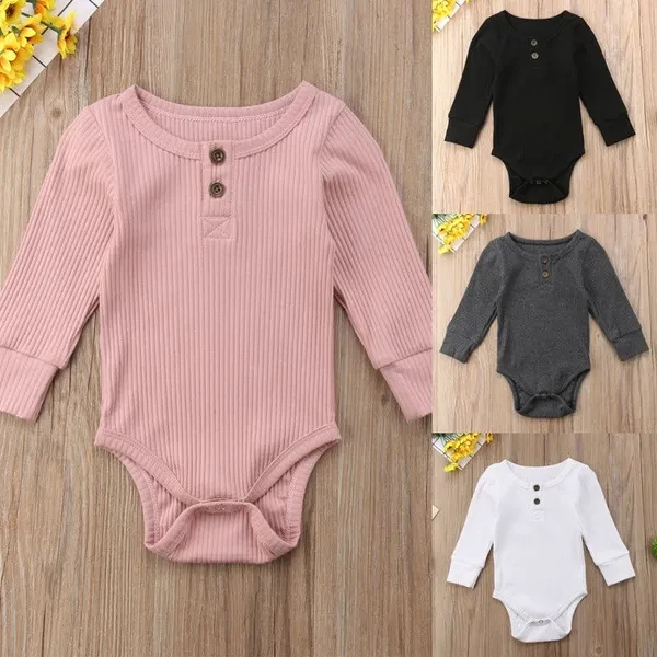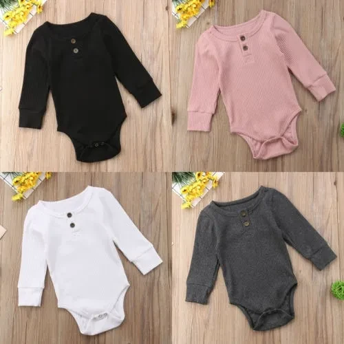 Newborn Unisex Baby Solid Onesies Basic Plain Rib Stitch Long Sleeve Bodysuit Clothes for Infant Boy Girl