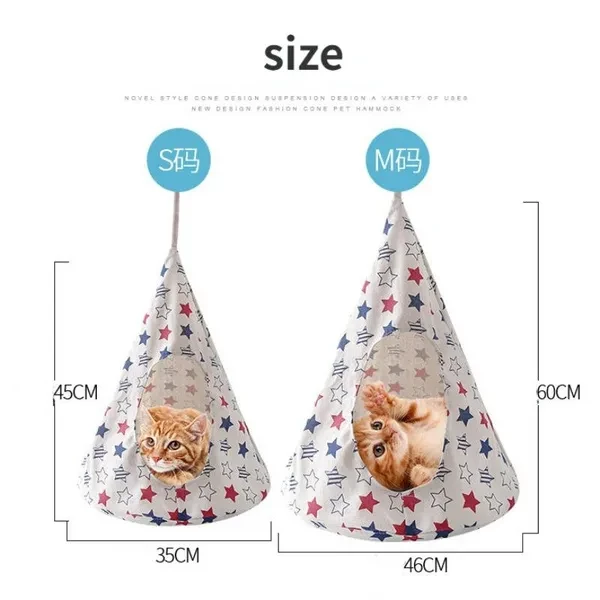 Feature High quality and environmentally friendly linen fabric, soft and comfortable, breathable and durable.; Easy to wash,and you can choose hand washing and machine washing.; Portable and hangable pet nest, convenient and practical, foldable; Pets can be shaken like swings on top to add fun; Suitable for cats, small dogs, and other small pets Specifications Material:Linen + sponge Shape:Conical Specifications: 1 , 2 , 3 , 4 , 5 Size:S,M S:35x35x45cm(13.4x13.4x17.3inch) M:46x46x60cm(17.7x17.7x22inch) Package include: 1x PC