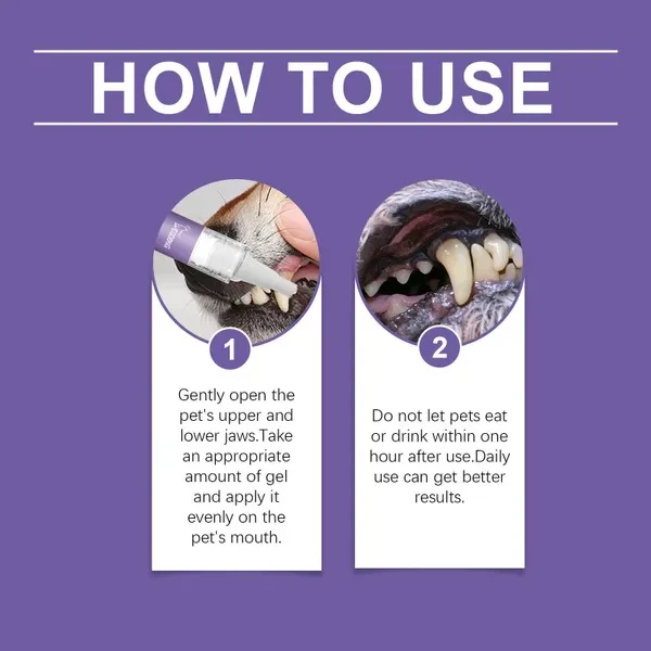 Our pet mouth repair gel contains chamomile extract, lemon extract, peppermint extract. It can remove tartar buildup on the teeth, resulting in a comprehensive oral cleaning experience. Eliminate bad breath, relieve tooth sensitivity, gingival bleeding, etc. Its use is simple: 1. Gently open the pet's upper and lower jaws. Apply appropriate amount of this product evenly to pet mouth. 2. Don't let your pet eat the drink for an hour after use. Daily use can get better results. The ingredients are mild, the taste is fresh, they won't damage your pet's teeth or gums, and they're also very effective at removing tartar and other buildup.