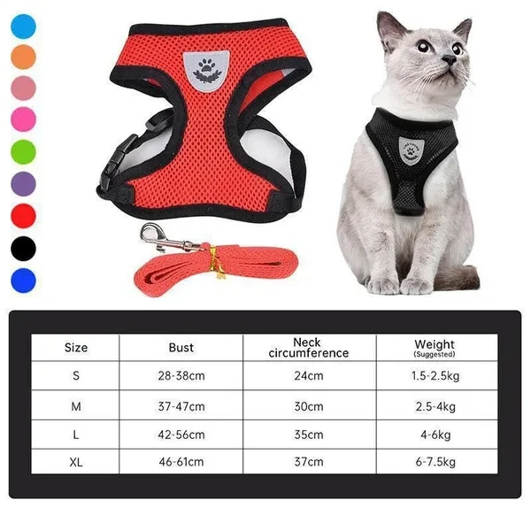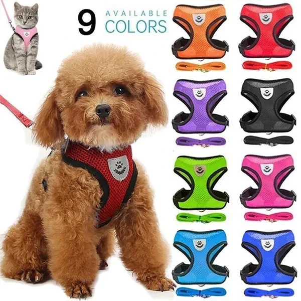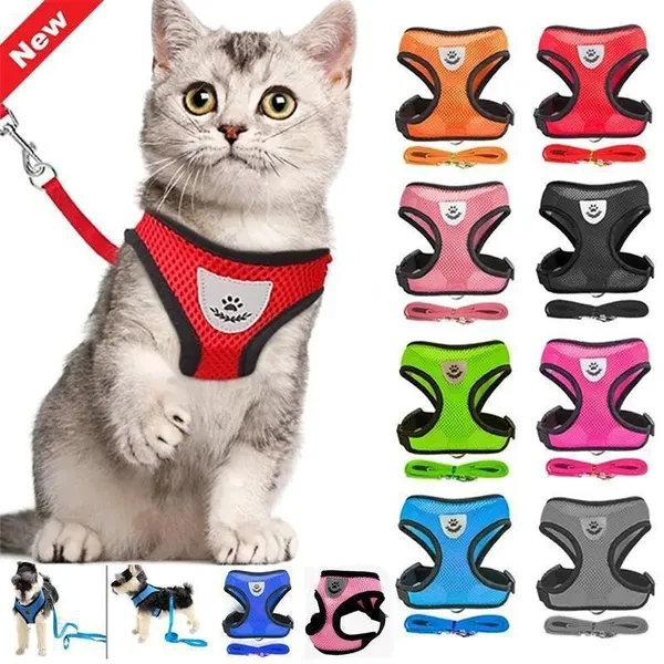 Pets Adjustable Harness Vest Cat Dog Walking Lead Leash For Puppy Collar Breathable Polyester Mesh Harness For Small Medium Dog Cat Pet