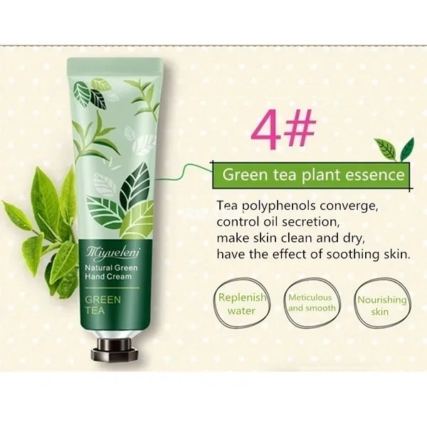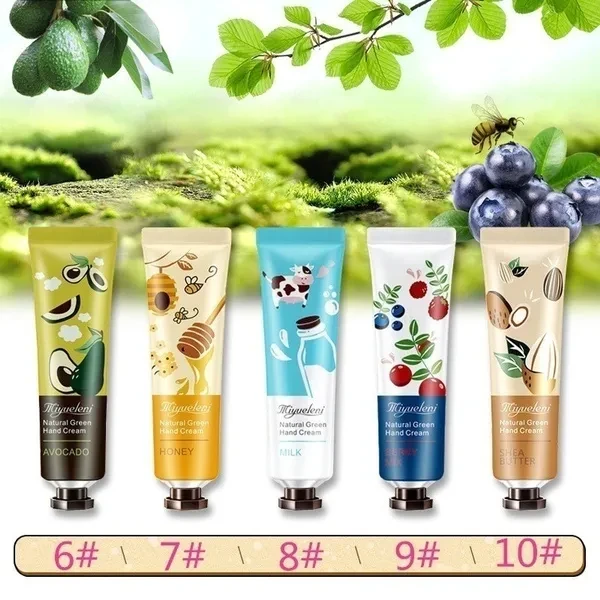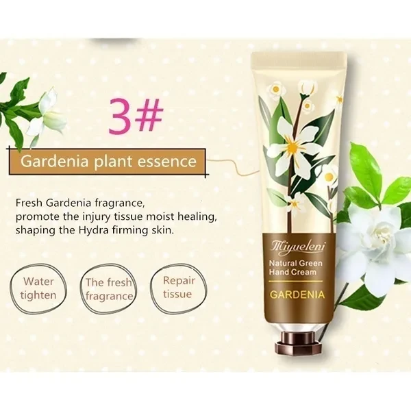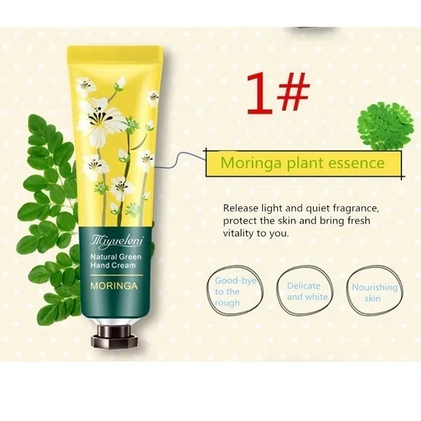Product category: Hand Cream Efficacy: whitening, moisturizing and exfoliating. Applicable crowd: general use (especially suitable for deep yellow skin, dry crack, water shortage, rough crowd). Texture: ointment / refreshing, not greasy Description: extraction of different plant extracts, no artificial additives, no animal oil. Flavour type: fruit / flower / nature Taste: Moringa, gardenia, rose, Sakura, Green Tea, blueberry, milk, honey, shea butter, shea butter The package includes: 1pcs