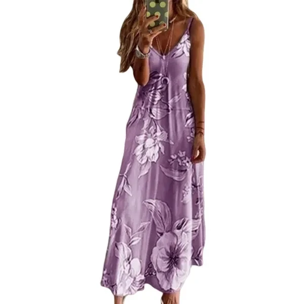 Plus size 3XL Women Summer Floral Maxi long sundress Hot Fashion Sleeveless V Neck Casual Dress Vocation Femme Beachwear Clothes
