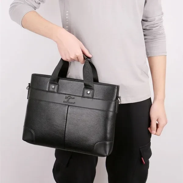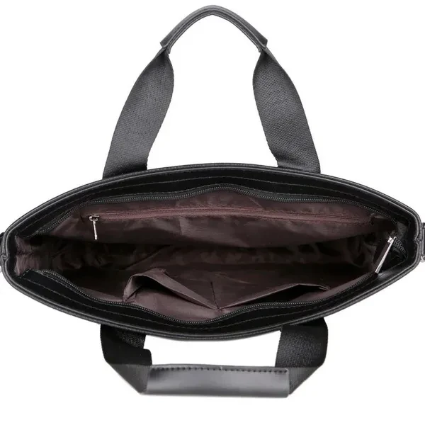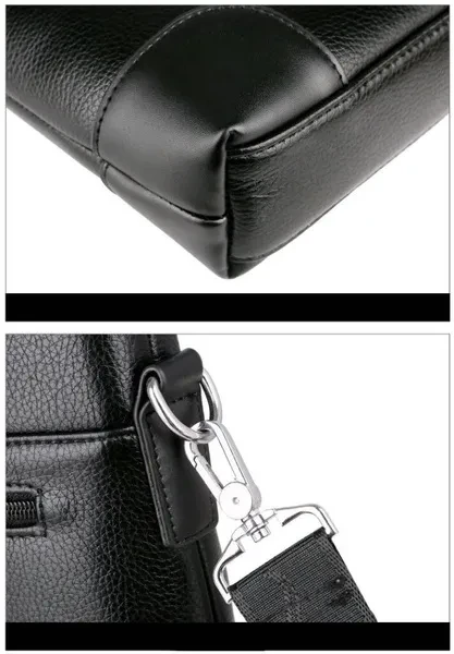 Material: High Quality PU leather Lining texture: polyester Style: Business Bag shape: cross section square Package internal structure: ID bag, mobile phone bag, zipper pocket, computer pocket Strap root number: single Lifting parts: telescopic handle Opening method: zipper Outer bag type: inner patch pocket Size: 26*37*7cm/ (suitable for 14 inch laptop) Color: Black/Brown Note: due to the different display and light, there may be a slight color difference