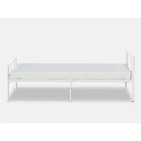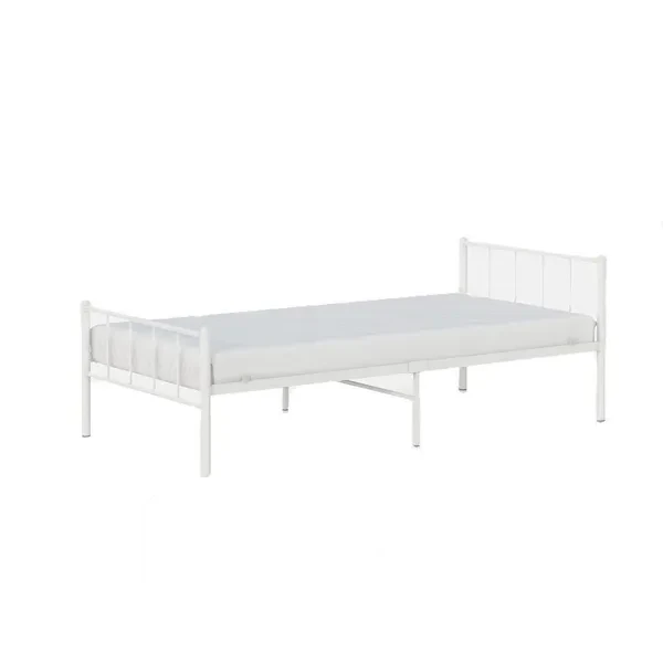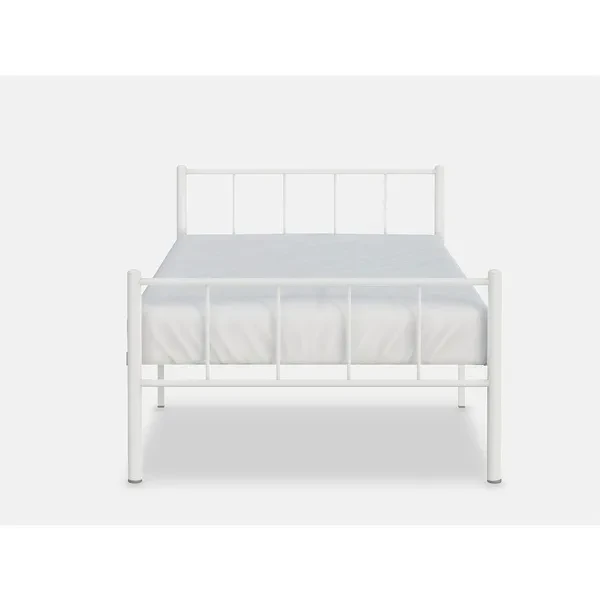 Give your toddler a bed to aspire to. With the Rack Furniture Steel Twin Sized Bed, you'll have them sleeping on their own in no time. With a sleek, simple design, the Austin Metal Twin Bed is the natural next step for your child as they transition out of the crib or toddler bed. The solid steel construction provides years of use, with six points of contact, delivering reliable support whether your child is sleeping or playing. With a non-toxic finish, this bed frame wipes clean easily, making this the ideal fit for the terrible twos. Included in this bed frame set are a headboard, footboard, and full metal slat mattress support. Integrating a box spring and bunkie board is not required and a mattress is not included. This classic twin bed assembles quickly and easily with all necessary parts and tools included. This bed measures 79.53 inches long, 39.49 inches wide, and 30.39 inches tall. Let your child sleep in style and makeup bedtime exciting with the Rack Furniture Steel Twin Sized Bed