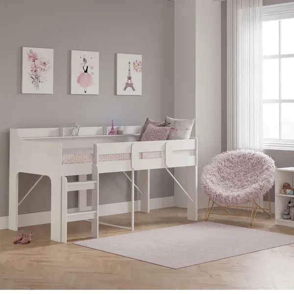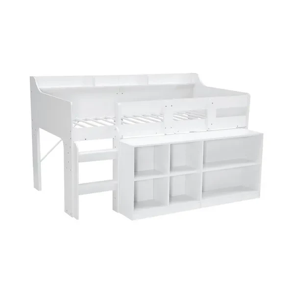 Rack Furniture Hamilton Twin Sized Kids Loft Bed Frame with Storage Unit, White