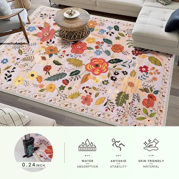Regional Carpet Living Room Carpet Soft Machine Washable Bohemian Farmhouse Neutral Anti Staining Indoor Carpet Bedroom Dining Table Home Office Decoration
