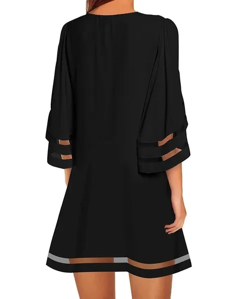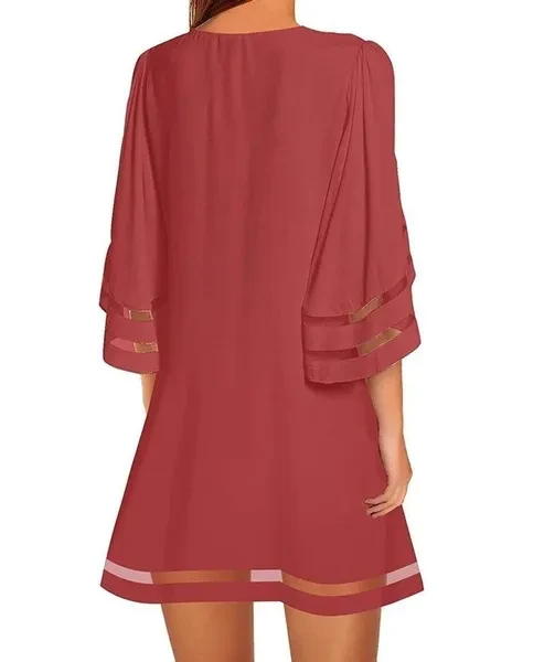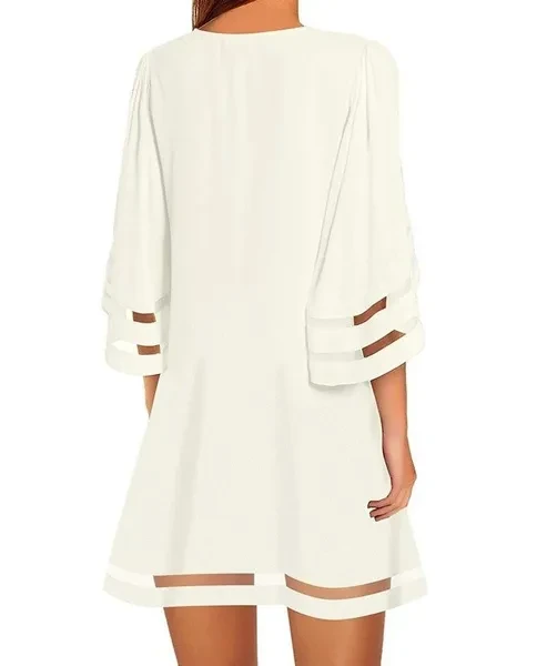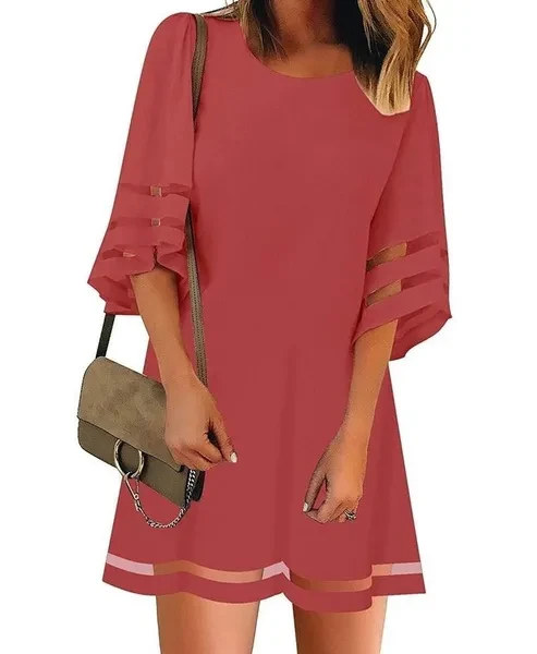 Summer Casual Womens Short Sleeves Round Neck Flared Sleeves Dresses Solid Color Loose Dresses Short Dresses Plus Size