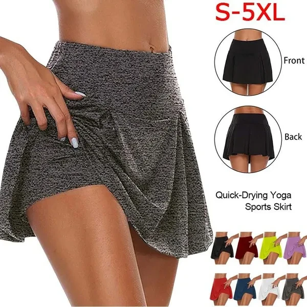 Summer New Women Sports Tennis Dance Fitness Shorts and Skirts Quick Drying Solid Female Tennis Running Athletic Workout Skirt with Shorts Yoga Fitness Skirts
