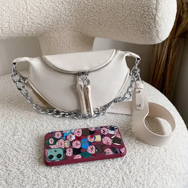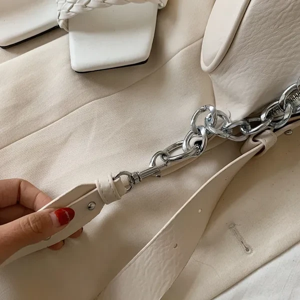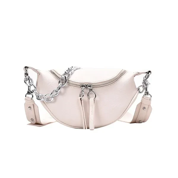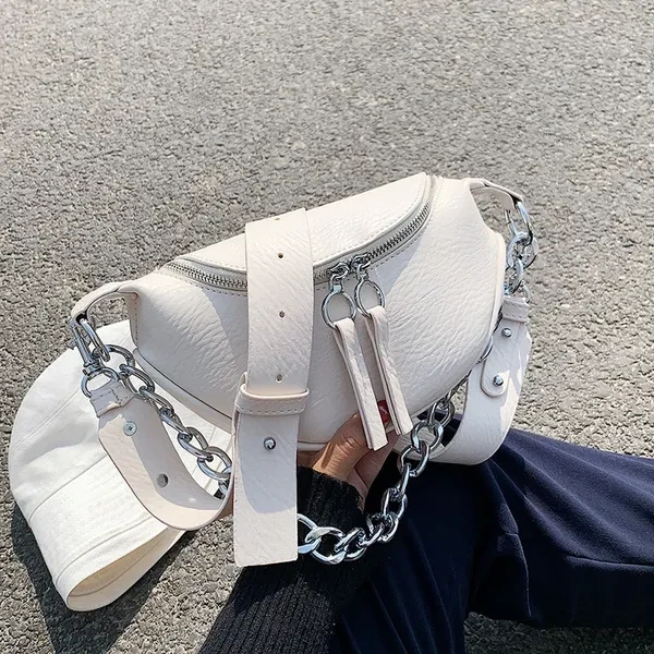 SWDF Silver Chain Design PU Leather Crossbody Bags for Women 2020 White Shoulder Messenger Handbags Small Chest Bag Travel