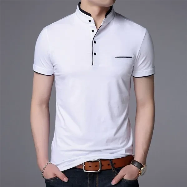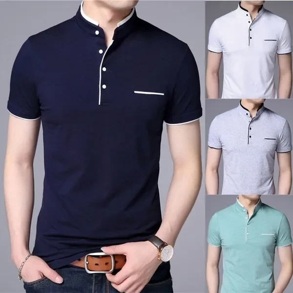 Sleeve Length(cm):Short Style:Casual Material:Cotton Collar:Stand Sleeve Style:Normal Pattern Type:Solid Hooded:No Size:M,L,XL,XXL,XXXL