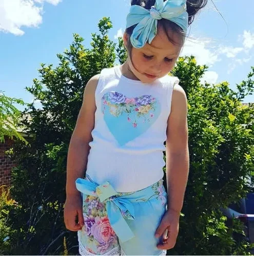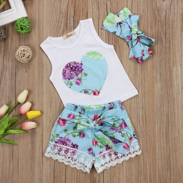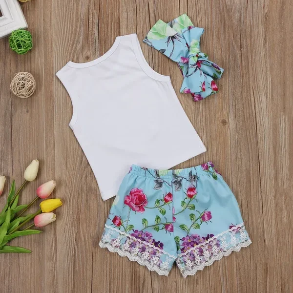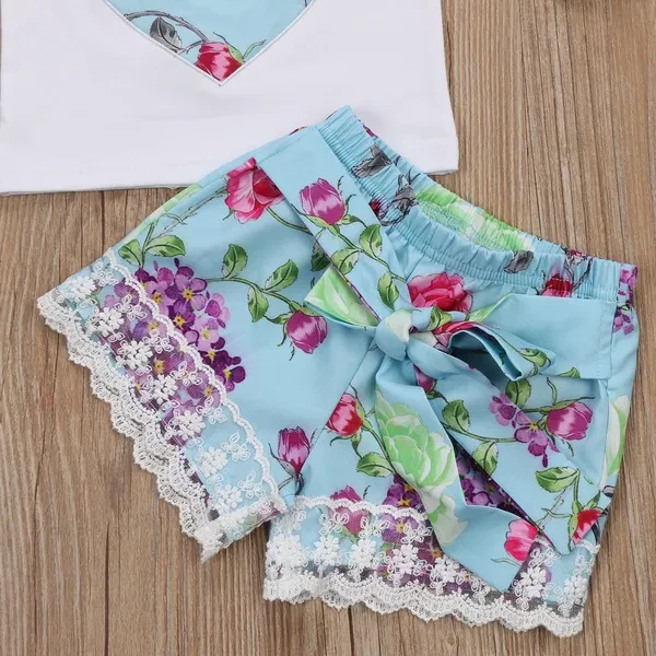Toddler Infant Kids Baby Girls Floral T-shirt Vest Tops + Lace Shorts Pants Outfits Clothes Set 1-4 Years