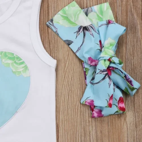 Lovely Toddler Baby Girls Tops+Shorts+Headband 3Pcs Outfits !! High quality and Brand new 100% Main Color: AS The Picture New in Fashion Material: Cotton blend Package included: 1 x Tops + 1 x Pant + 1 x Headband (Does not include other accessories) Please kindly refer to your kids actual height and the size chart before buying/bidding. Thanks. There is 2-3% difference according to manual measurement. please check the measurement chart carefully before you buy the item. 1 inch = 2.54 cm Please note that slight color difference should be acceptable due to the light and screen.