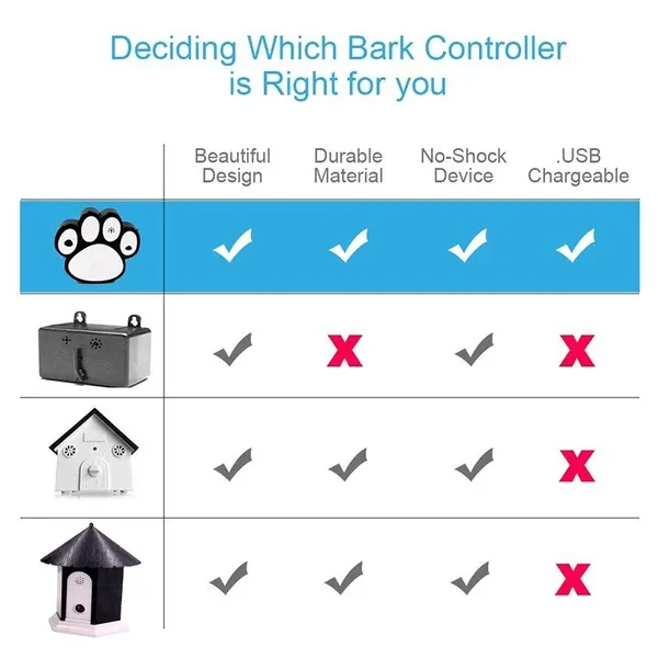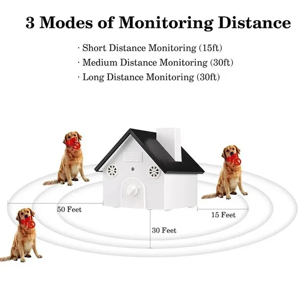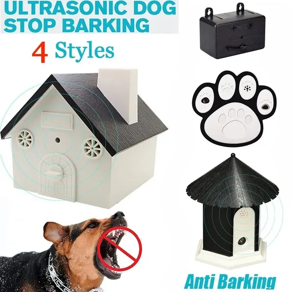 SIZE1:Rectangle Shaped SIZE2:Bird House Shaped SIZE3:House Shaped SIZE4: Dog paw Shaped Uses ultrasonic technology to stop barking, More effective and durable Sensitive microphone isolates and picks up barking up to 50 feet away to stop barking,for outdoor use Four adjustable ultrasonic volume levels – test, low, medium, and high, with LED battery power level indicator Safe and humane method of bark control, suitable for all breeds and sizes of dogs,except for deaf or hearing impaired dogs Pre-assembled, easy set-up, requires low maintenance, and weatherproof (but avoid exposing to very cold or very hot temperatures from 0°C~45°C, 32°F~113°F). Attractive and discreet birdhouse design looks great in your yard Color:Black Specifications: Material: PP Power: 1 * 9V Battery (Battery is not included) LED Color: Green / Red Modes: T: Verify the microphone and speaker are functional 1: Low range(Up to 15 feet) 2: Medium range(Up to 30 feet) 3: High range(Up to 50 feet) Item Size: Approx. 15.5 * 15.5 * 16.5cm / 6.1 * 6.1 * 6.5in (L * W * H) How does it work? Insert a standard 9-volt battery into the Ultrasonic Dog Bark Controller . The unit is automatically activated by the sound of barking. When the device is within the range of a barking dog, the microphone will isolate and pick up the barking to emit an ultrasonic sound to silence the dog. The anti-bark device has three range levels, including a test mode, and is effective up to 50 feet. Note: This product is only suitable for outdoor use. Dont touch by children. The product will not work on deaf or hearing impaired dogs. Human cannot hear the ultrasonic sound, however precautions should be taken when preparing the outdoor bark control for use. The Ourdoor Bark Contral is weatherproof.However,if water enters into the microphone it may disrupt the units operation. After the micorphone is dry it will resume working properly. Whats included: Ultrasonic Dog Bark Controller (battery not included) and user-friendly manual This merchant is committed to only offering products that comply with the General Product Safety Regulation.